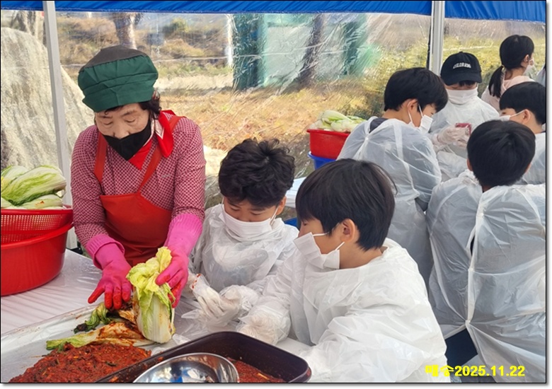 에 사는 어린이들이 김장김치 체험을 하였다.