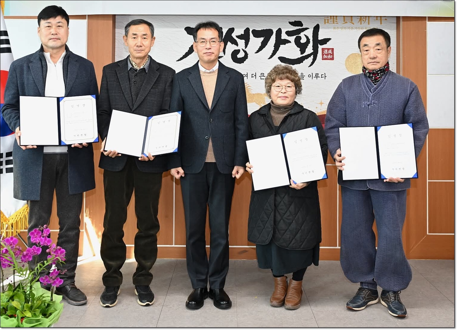 이관식리장님,장길원리장님, 우창희면장님, 한숙희리장님, 문종구리장님