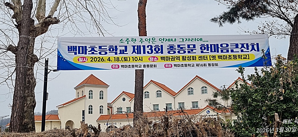 백마초등학교 제13회 총동문 한마음큰 잔치가 4월 18일(토요일) 10시 16회 주관으로 모교(백마권역할성화센터)에서 개최된다